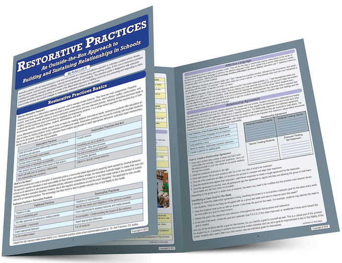 This laminated guide by Rufus Lott III provides an overview of restorative practices and offers a three-phase model with concrete strategies for implementing RP in the classroom: