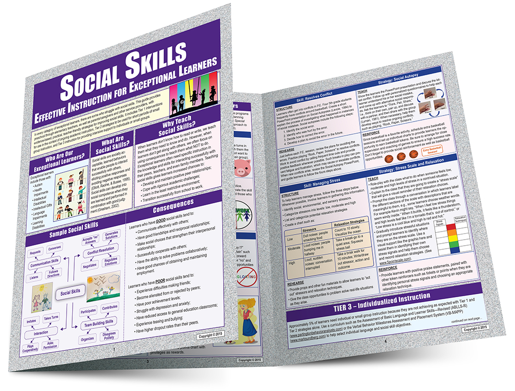 In every category of exceptional learners, there are some learners who struggle with social skills. This guide provides PreK – 5th grade teachers with evidence-based, practical, teacher-friendly, strategies for helping children with special needs build social skills. Written by experienced classroom teachers, this guide recommends interventions for strengthening important social skills, including communication, conflict resolution, and team building skills.  It includes Tier 1 interventions for educators to use in the context of ongoing academic instruction, Tier 2 strategies for short periods of small group instruction, and Tier 3 interventions for intensive instruction or support. Each of the interventions listed are broken down into four parts: structure, teach, rehearse, and reinforce. These ready-to-use strategies will help classroom teachers promote social competence in diverse learners.